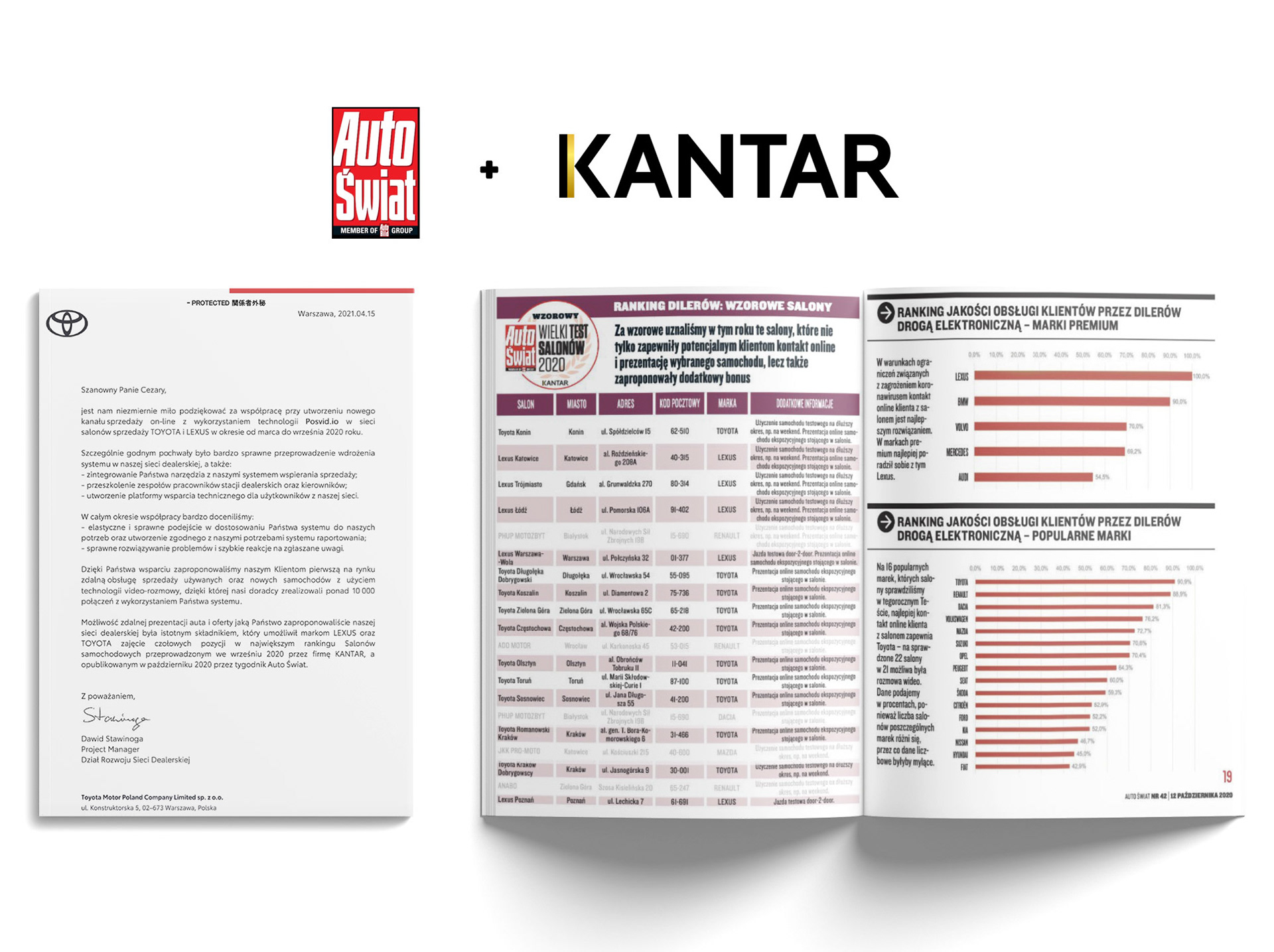 Badanie KANTAR potwierdziło wyjątkową skuteczność platformy sprzedaży wideo TOYOTA. W rankingu Auto Świat TOYOTA i LEXUS zajęły pierwsze miejsce w zakresie innowacji i obsługi online. Spośród prawie 400 ocenianych salonów, 20 zostało wyróżnionych przez KANTAR – aż 15 z nich korzystało z systemu, który zaprojektowałem. To dowodzi istotnego wkładu platformy w poprawę jakości obsługi oraz doskonałości operacyjnej.